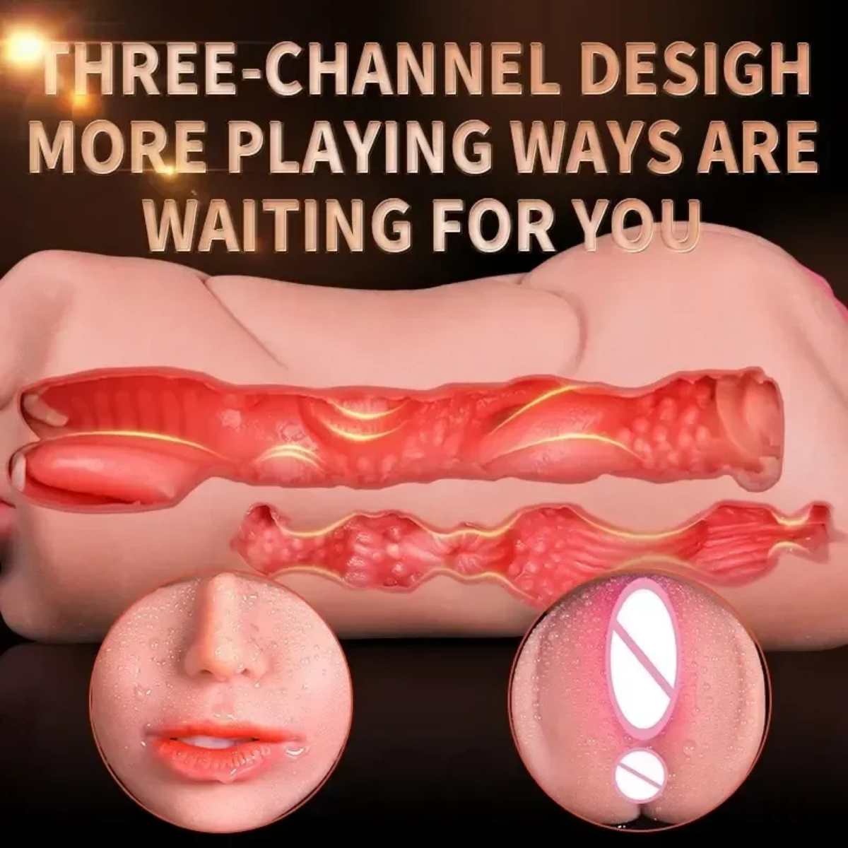 3-in-1 design: mouth, pussy & anal